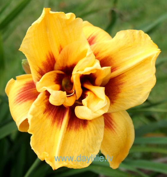 Dzeltens pamattonis, sarkani brūna acs uz visām ziedlapām. Pildīta.