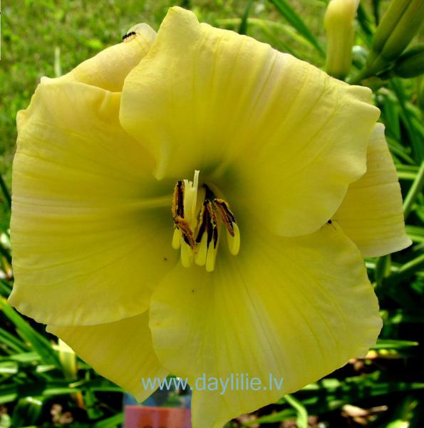 Gaiši citrondzeltena, zaļa rīklīte. Atliekta zieda forma.