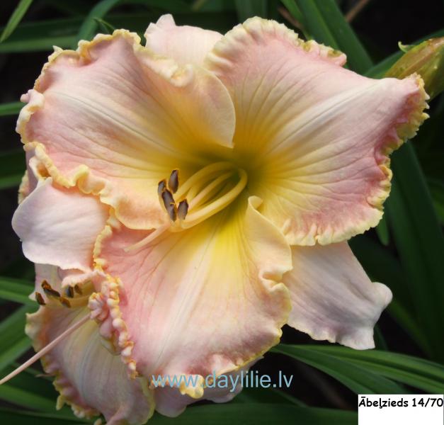 Väga heledat pastellroosa, tugevalt kortsus äär