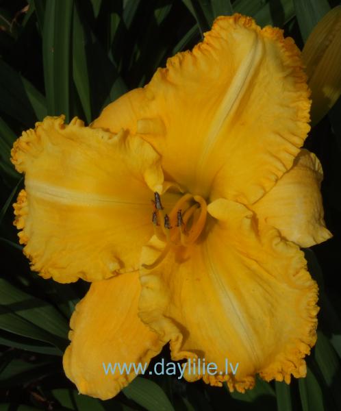 Suur lill, kollane tugeva kortsuga servaga. Õielehtedel teemantkiirgus.