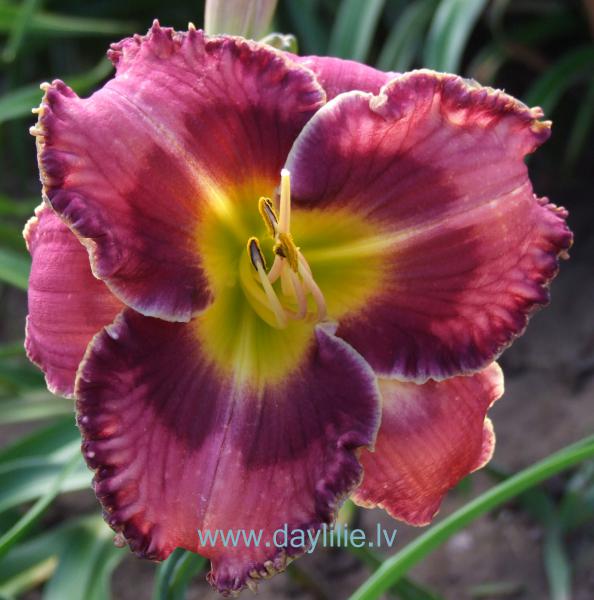 Lilla roosa tumeda lilla silmaga ja tumeda lilla valge, kroogitud serv.