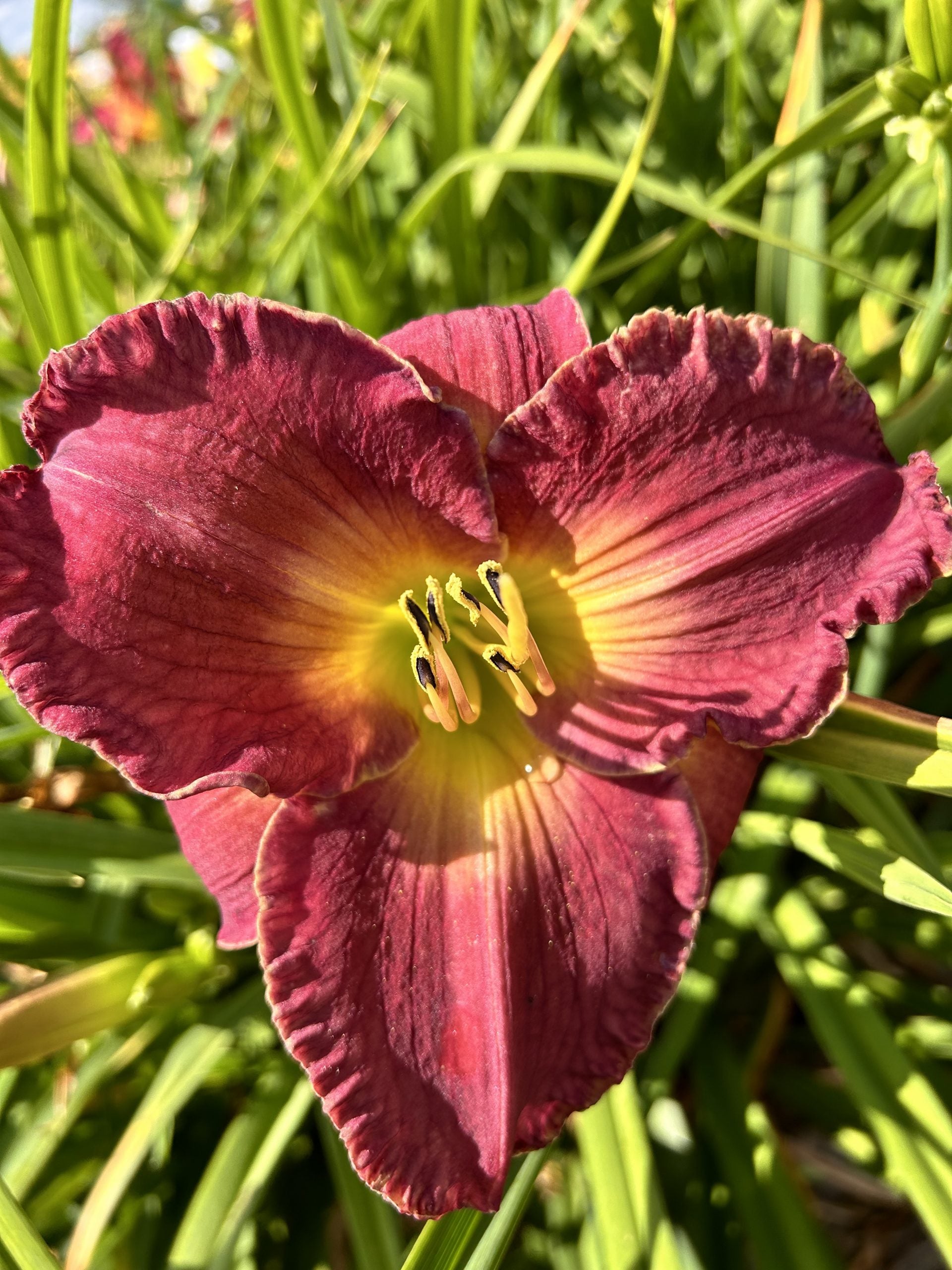 Tume roosa pastelltoon, kollane keskmine, hele kortsus serv.