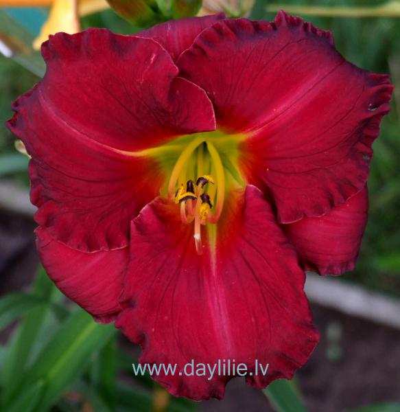 Tume, kirsipunane, õiekuju.