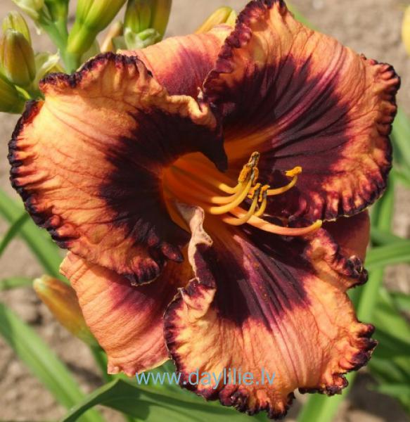 Oranž suurte mustade silmadega ja laia, musta, tugevalt kortsus, äärisega.