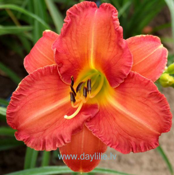 Kõrge, suur lõhevärvi lill, millel on kergelt kortsus serv.