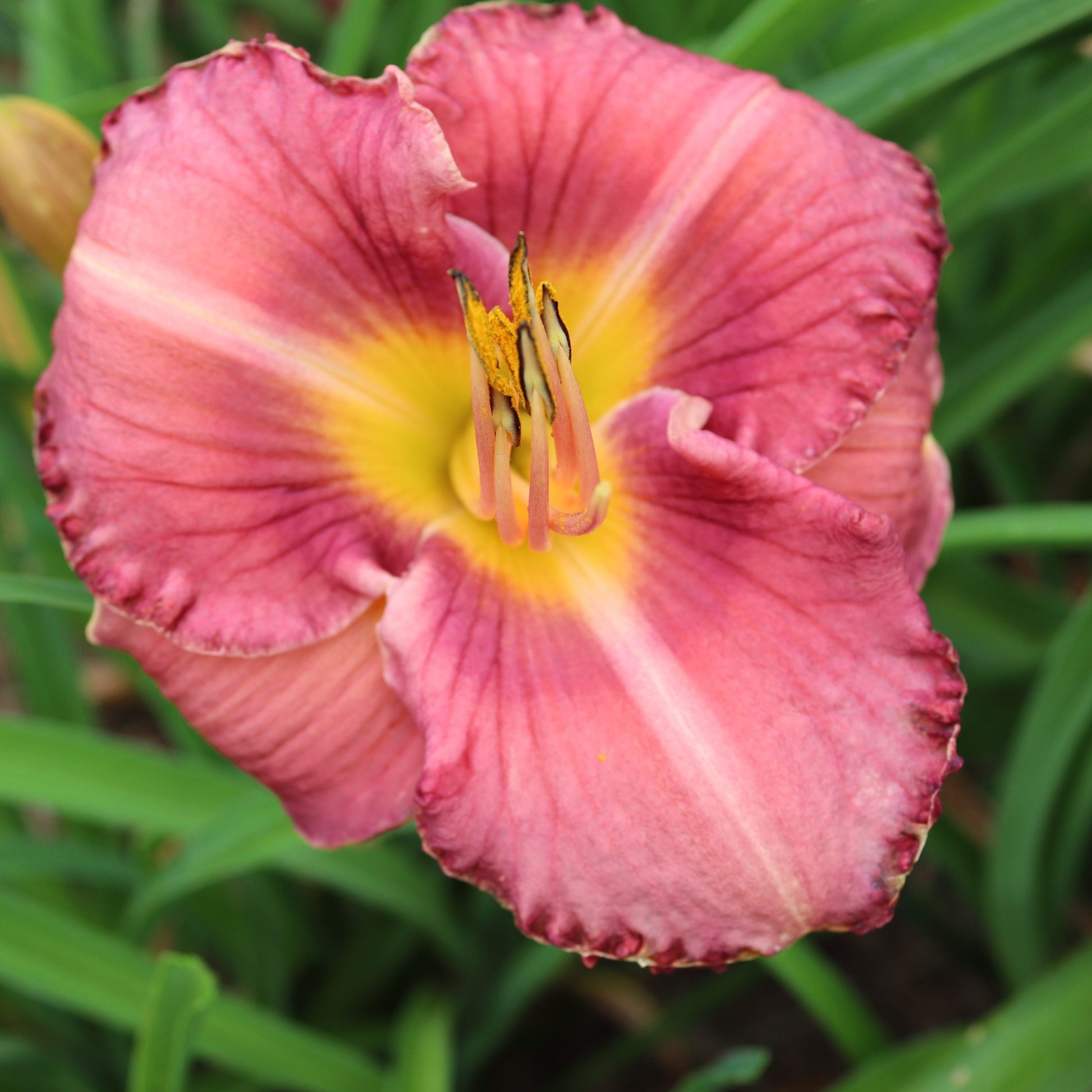 Lilla roosa kollase keskosaga, kergelt kortsus, tumedat eži.