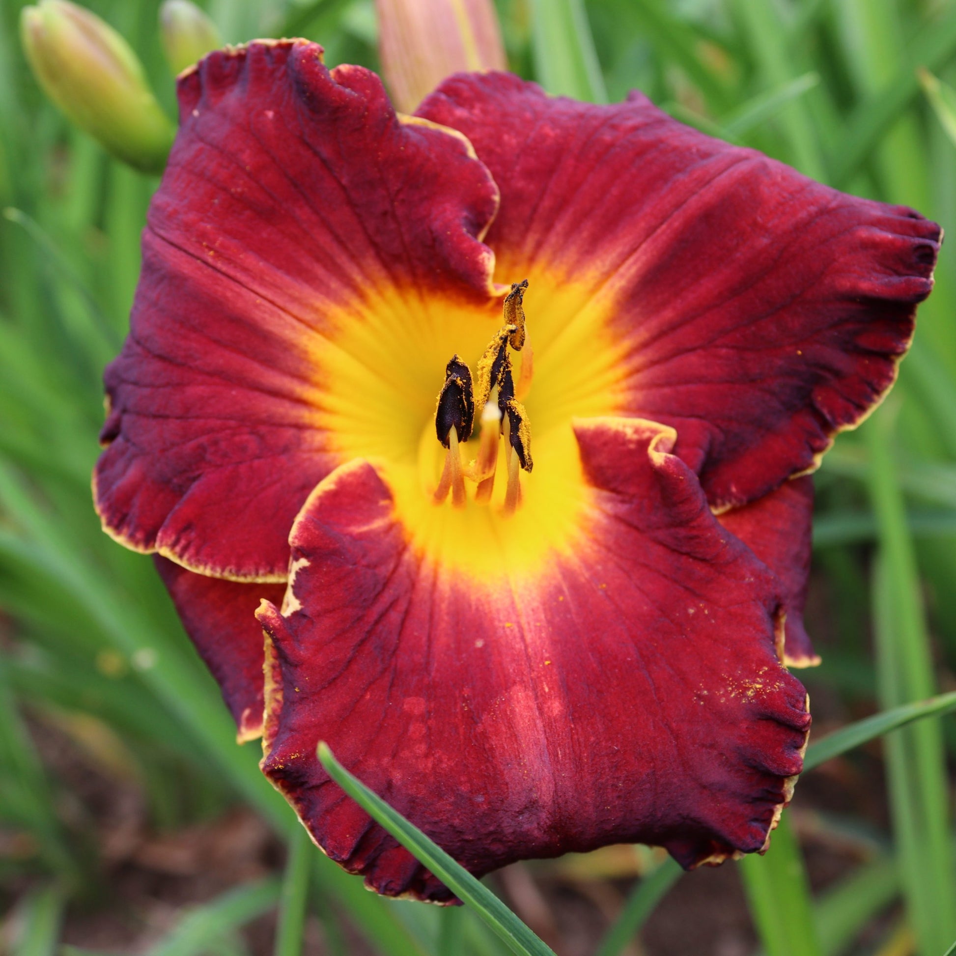 Tume punane pruun, kollane keskmine, tume kollane ja kergelt kortsus äär.