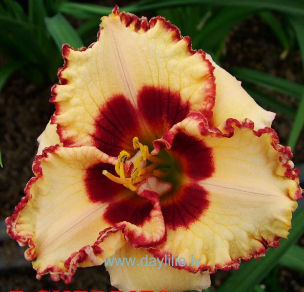 Krēmbalta, erks punane silm, erks punane, lai, väga tugevalt kortsus äär.