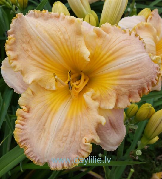 Augstā, aprikožu krāsas zieds ar stipri krokotu eģi.