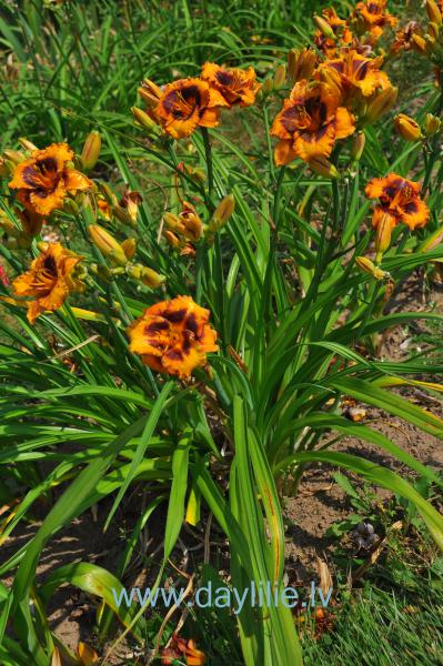 Sīkziedu, oranža ar lielu, tumšu aci, tumšu, krokotu maliņu. Bagātīgi zied.
