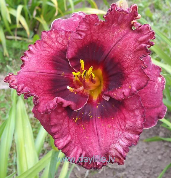 Tumši sarkana ar tumši violetu aci, krokota maliņa.