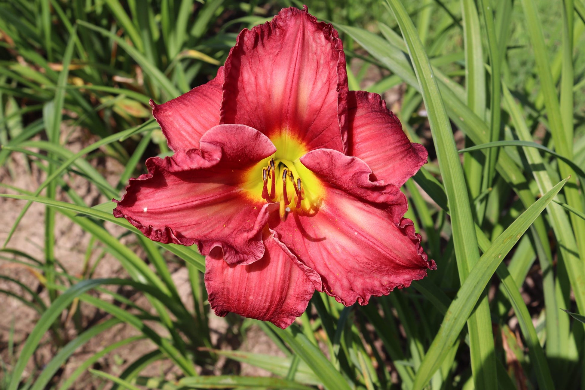 Aveņu krāsa, dzeltens zieda centrs, viegli krokota mala.