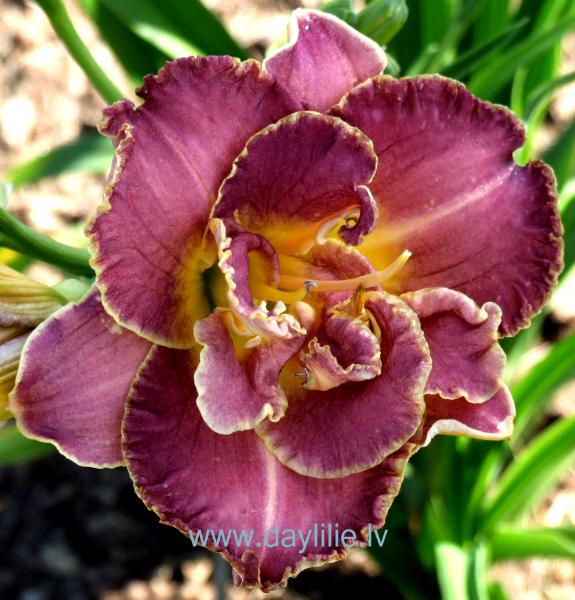 Violetrozā, dzeltena, stipri krokota eģe, daļa ziedu pildīti.