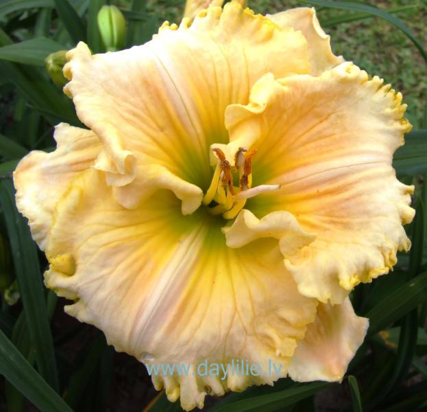 Gaiši bēšā krāsā, stipri krokota, ļoti labi vairojas, bagātīgi zied.
